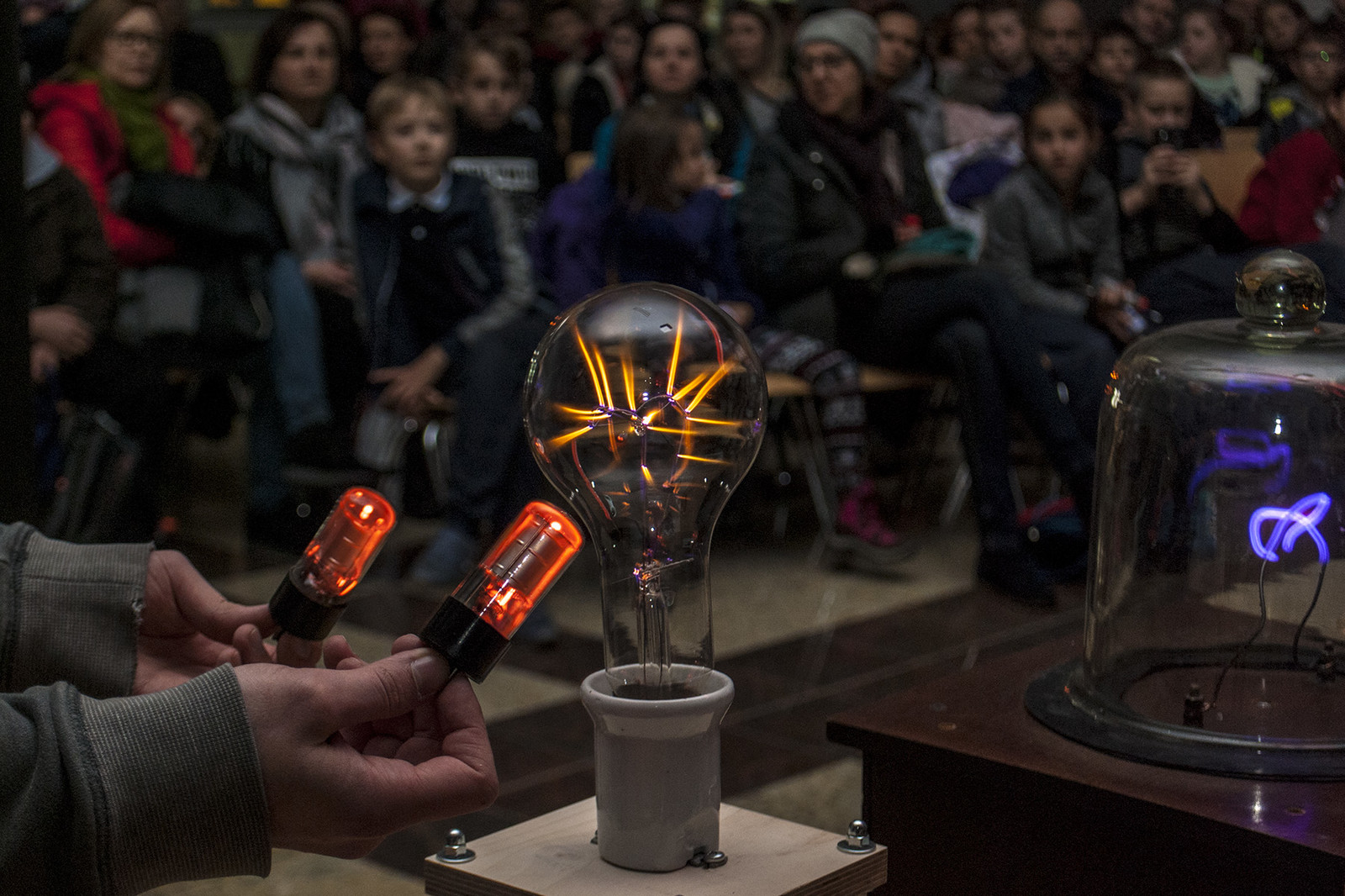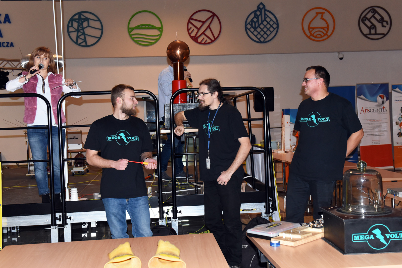 Popularną atrakcją Nocnych Spotkań z Nauką był także „teatr wysokich napięć”, wydarzenie zorganizowane przez firmę Polimedia, partnera Dni Otwartych Politechniki Rzeszowskiej, która współpracuje z uczelnią w ramach Politechniki Dziecięcej. Firma Polimedia przygotowała m.in. spektakl z wykorzystaniem jednych z największych w swoich klasach transformatorów Tesli. Współorganizatorem wydarzenia było Studenckie Koło Naukowe Elektryków „MegaVolt”. Zaprezentowane zostały urządzenia wykonane przez członków koła – generator Van der Graafa, lampowa cewka tesli (VTTC) oraz zademonstrowano wyładowania pod obniżonym ciśnieniem. Wszystkie zawiłości obserwowanych zjawisk i urządzeń wyjaśniał opiekun koła – mgr inż. Sebastian Hajder.