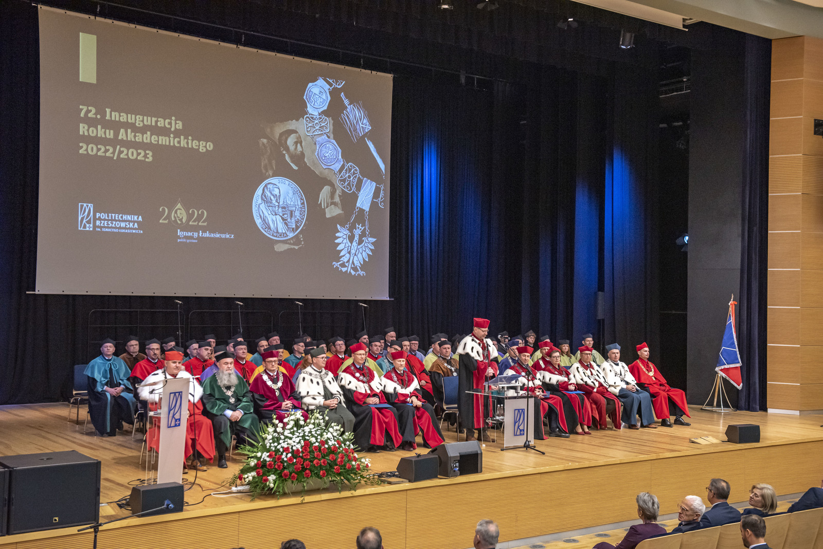 „Droga Młodzieży Akademicka, Szanowni Zebrani zgodnie z tradycją ogłaszam rok akademicki 2022/2023 na Politechnice Rzeszowskiej za rozpoczęty” – powiedział JM Rektor, uderzając trzy razy berłem, a Chór Akademicki odśpiewał Gaude Mater Polonia. Wykład inauguracyjny „Trendy transformacji energetycznej pod presją współczesnych wyzwań” wygłosił dr hab. Mariusz Ruszel, prof. PRz.