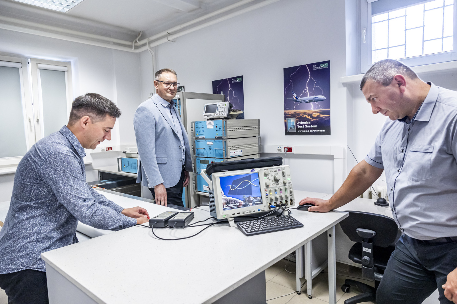 Od lewej: dr inż. K. Filik, prof. PRz G. Masłowski, dr inż. G. Karnas,